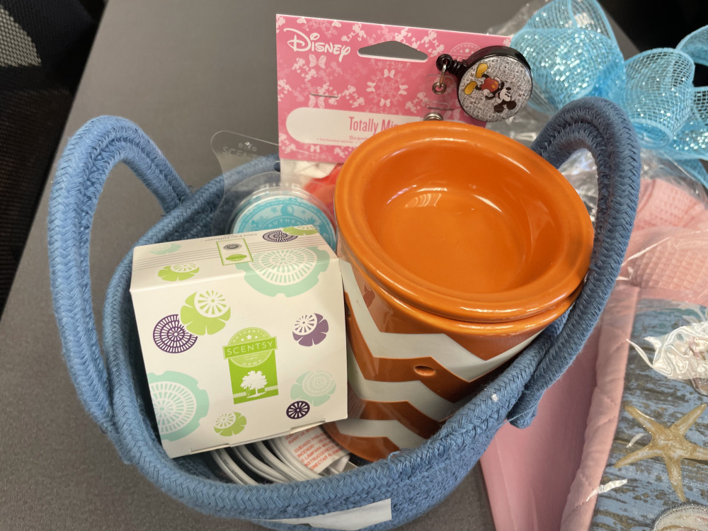 Scentsy lamp mini Scentsy scent pack mini fan diffuser scents Mahalo coconut smell scents with oven mitt cutting board and tongs
