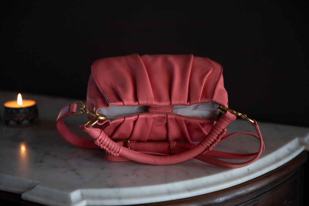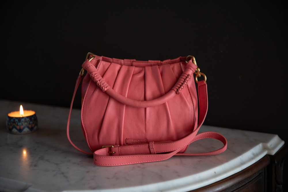 Vince Camuto Coastal Coral Convertible Crossbody - Detachable Crossbody Strap & Handle Strap - 3 Interior Pockets, one with zipper close and one for cell phone - 9" W x 8" H