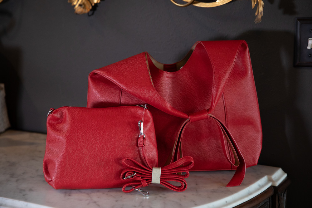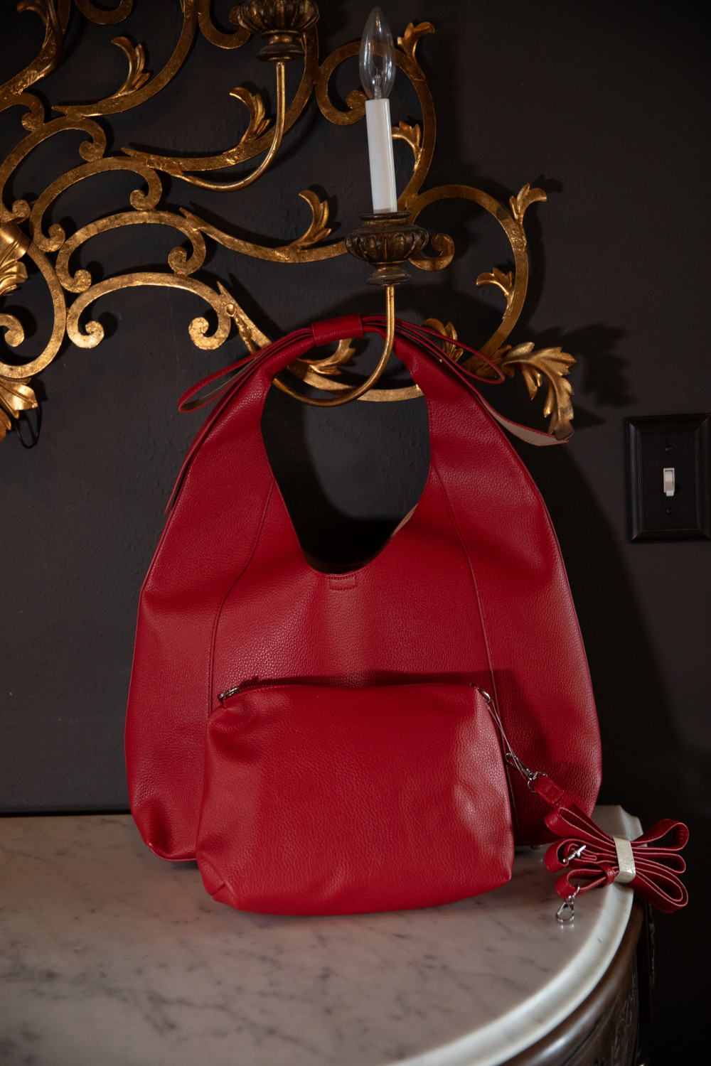 Purple & Lilac (Brand) Red Hobo Shoulder Bag with Pouch - Additional Pouch that doubles as a crossbody pouch - 17"W x 9.5" H