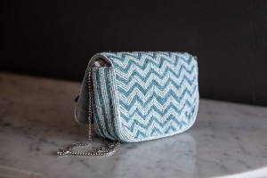 Handcrafted in India Blue Beaded Clutch - Silver Chain Strap - Magnetic closure - 8" W x 5" H