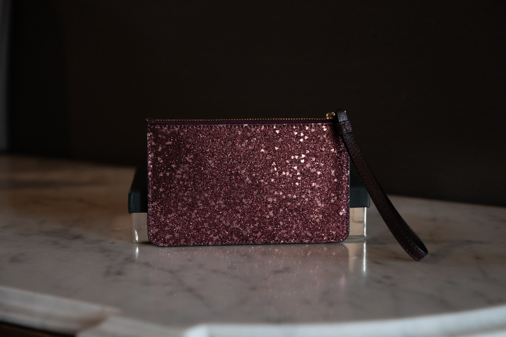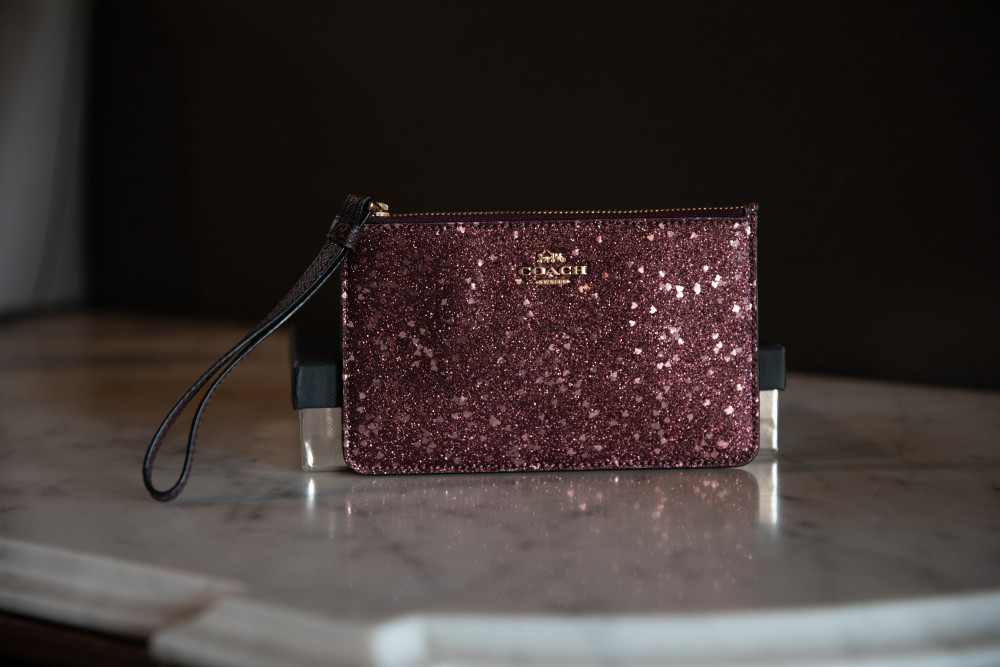 Coach Raspberry Heart Glitter Wristlet - Zip Closure & 2 Interior Pockets - 4.5"W x 7"H