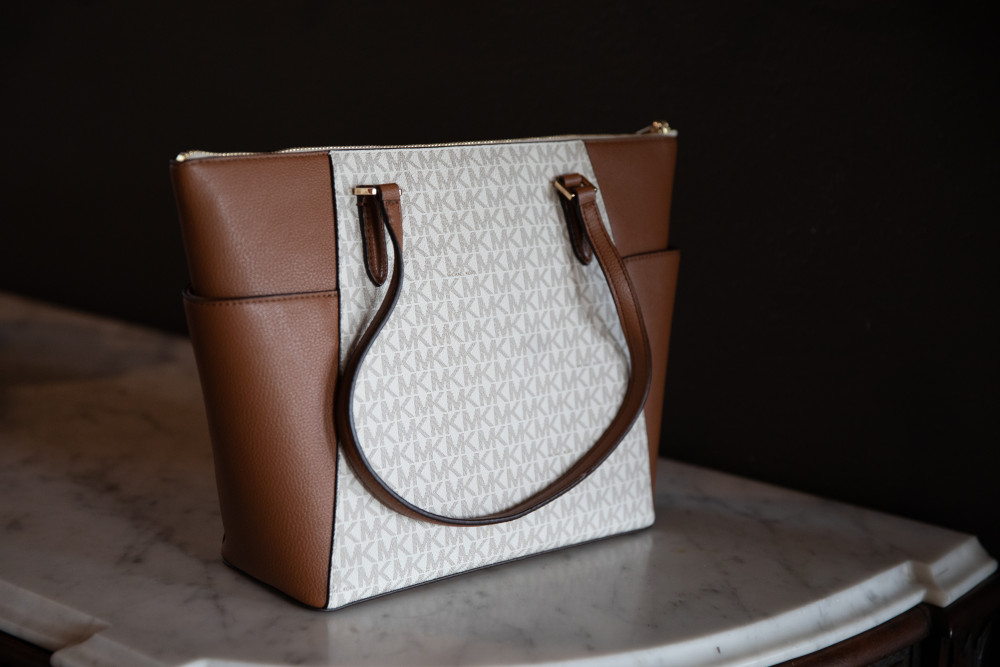 Michael Kors Charlotte Vanilla Tote - Two Shoulder Straps, Two Exterior Pockets, Zip Top Closure, One Interior Zipper Pocket - 15"W x 11"H