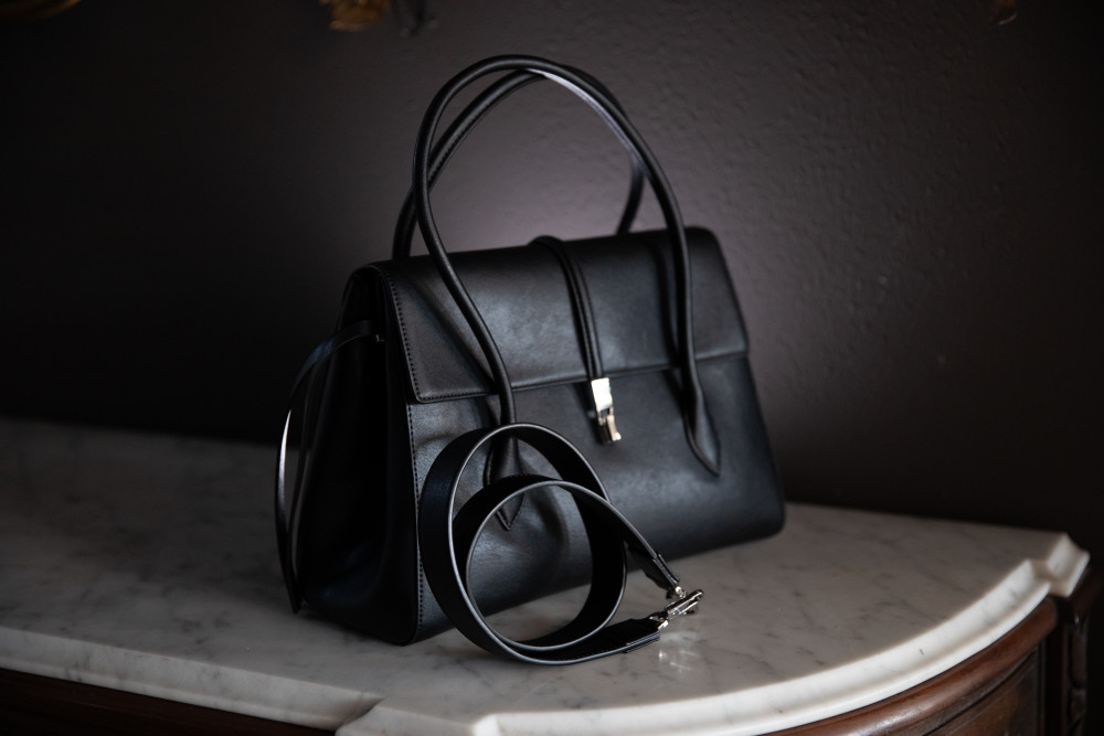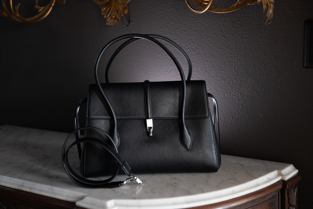 Pedro Hitch Handbag Black - Two Handles & Removable Shoulder Strap, Clasp Closure, One Interior Zipper Pocket, 1 Large Interior Pocket, Dust Bag - 12"W x 9.5"H