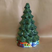 14.5” lighted tree, with electric light and plastic bulbs/star topper.